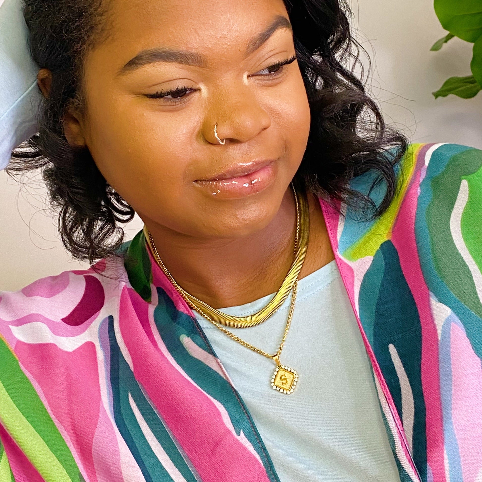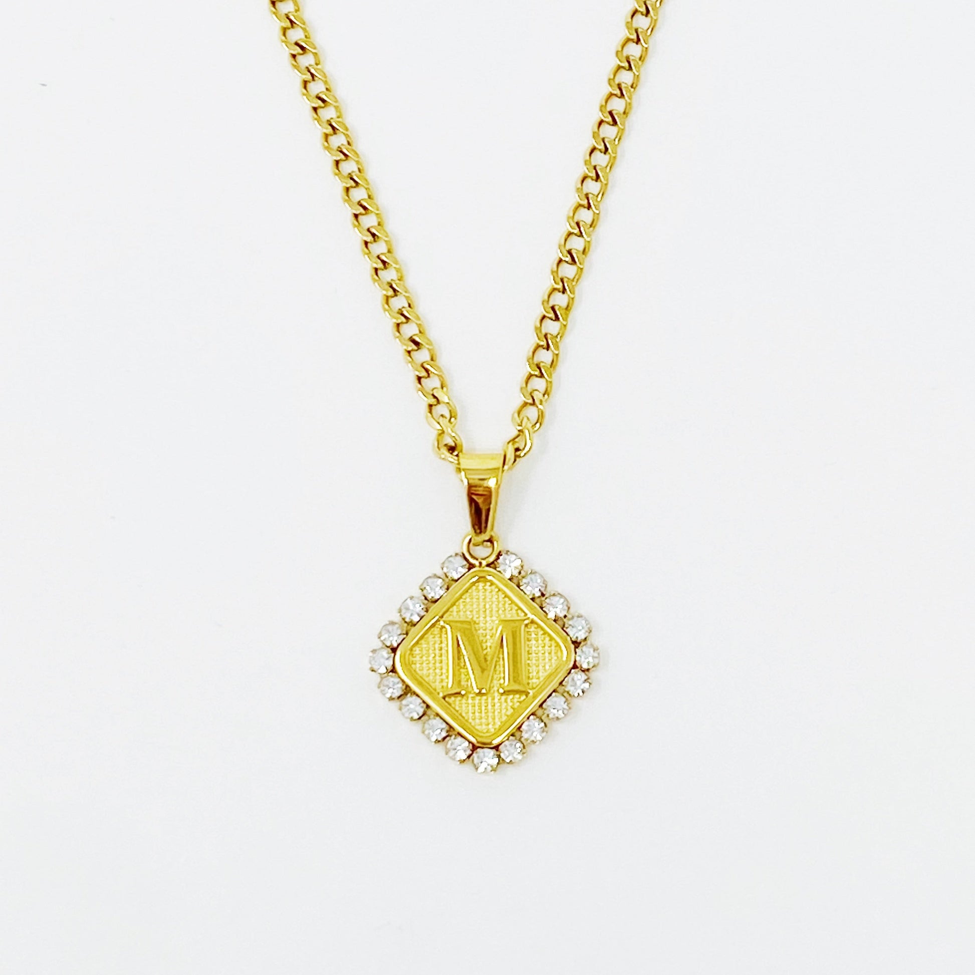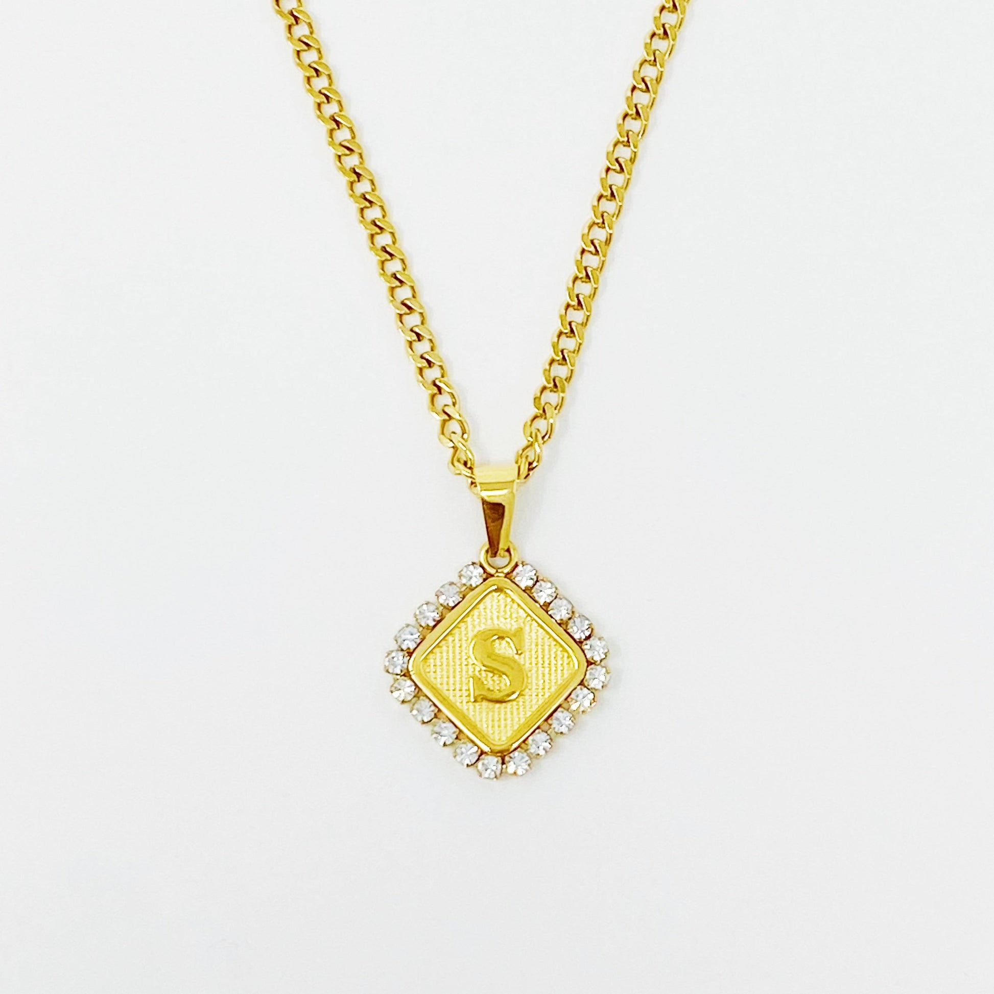 Stylish slim cuban chain and initial charm with CZ all around. Excellent on details, tarnish free stainless steel with high quality plating.