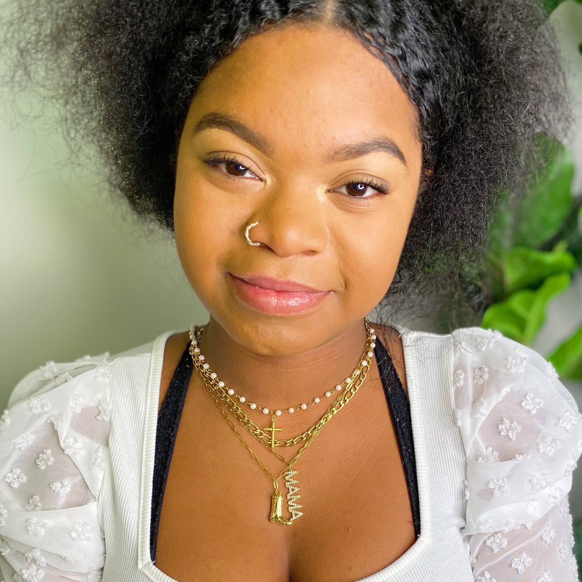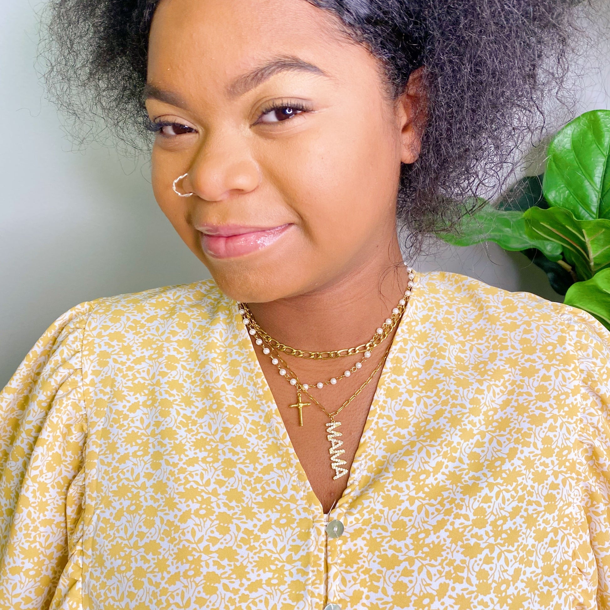 Features a unique cable-textured cross pendant with a gorgeous mixture of pearls in the chain. It has a boho and delicate aesthetic. Pendant, same front and the back.