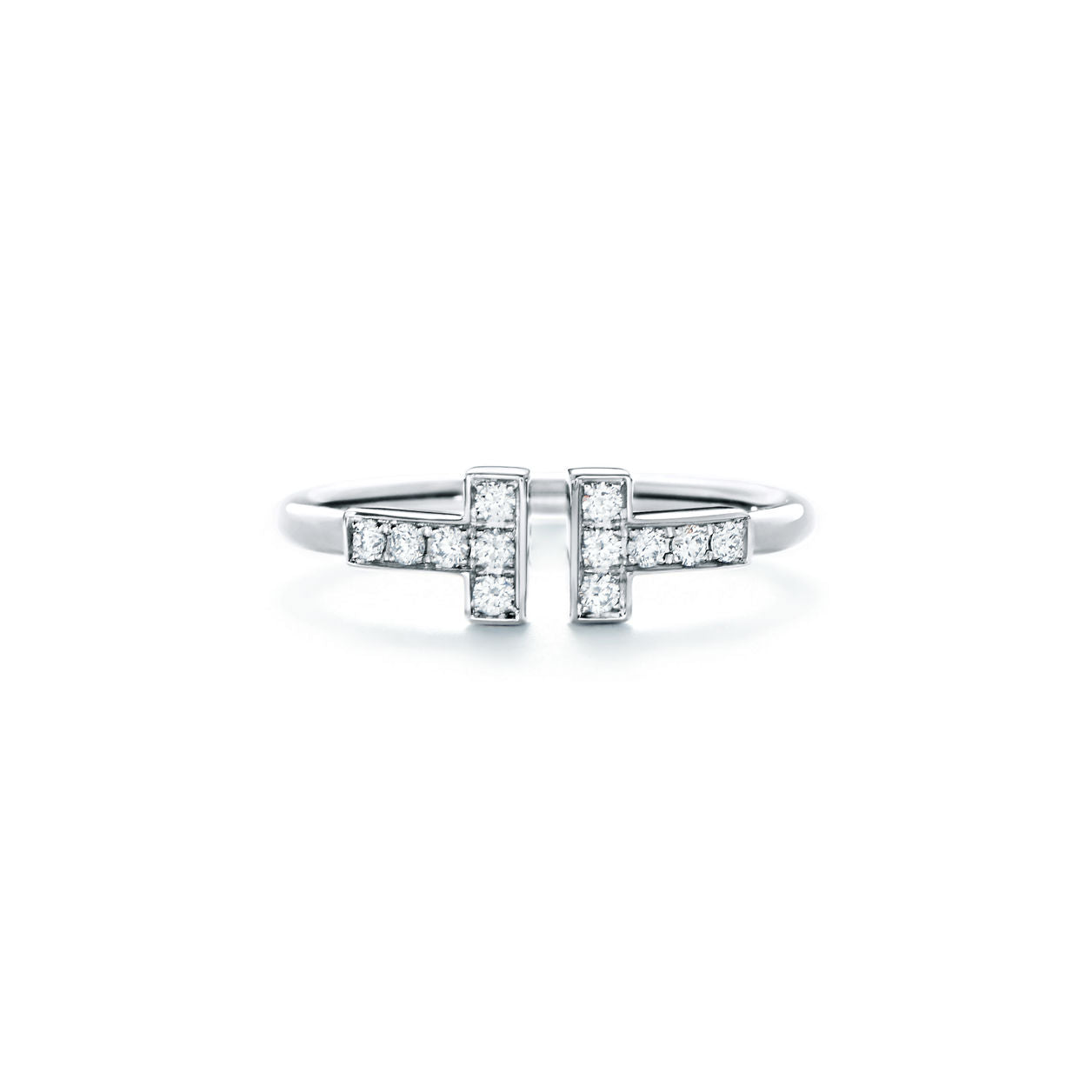 Crafted in 18k white gold and plated with rhodium for enduring shine, this diamond ring features round brilliant diamonds totaling 0.13 carats. Inspired by a 1975 archival bracelet, its design honors the iconic House motif and embodies the vibrant spirit of New York—the city of promise. Wear it alone for an elegant touch or pair it with other Tiffany rings to create a sophisticated, layered look.