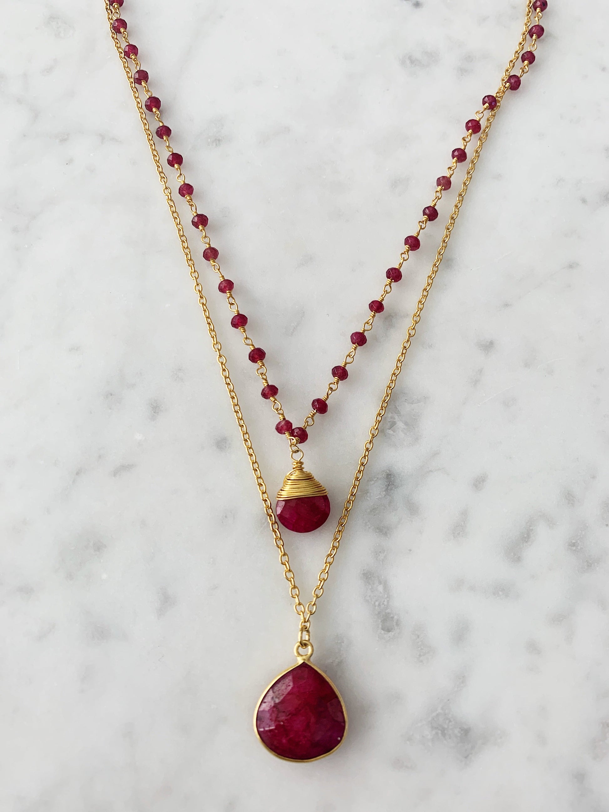 Double Jill Necklace with Gold Ruby Chain and Ruby Pendant