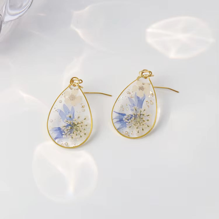 These resin flower earrings showcase delicate craftsmanship by preserving natural floral elements within a clear, durable resin. Lightweight and hypoallergenic, they offer both comfort and longevity, making them an elegant accessory for any occasion. Their unique design adds a refined, botanical touch to your ensemble while ensuring resilience against everyday wear. Perfect for those who appreciate subtle sophistication infused with natural beauty.