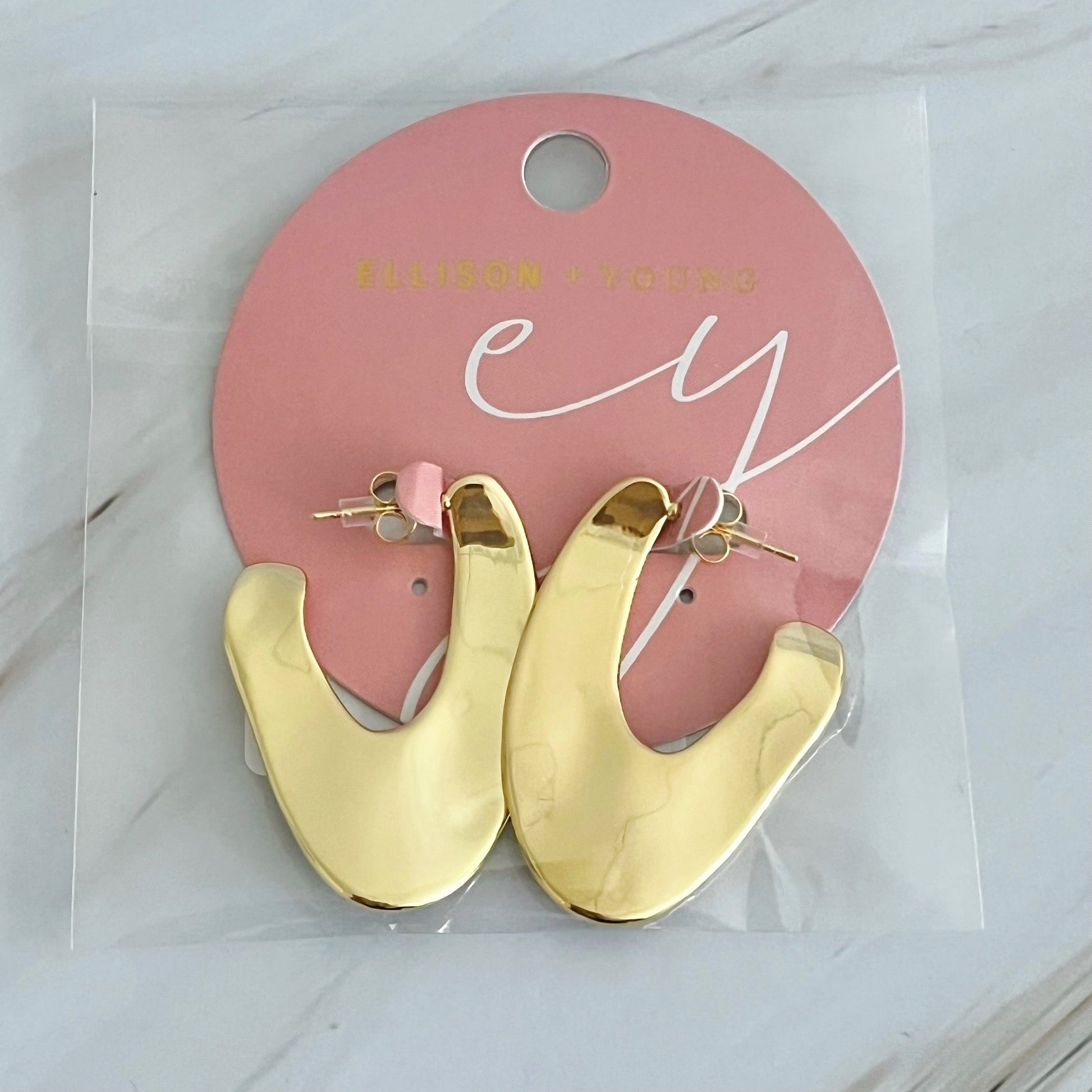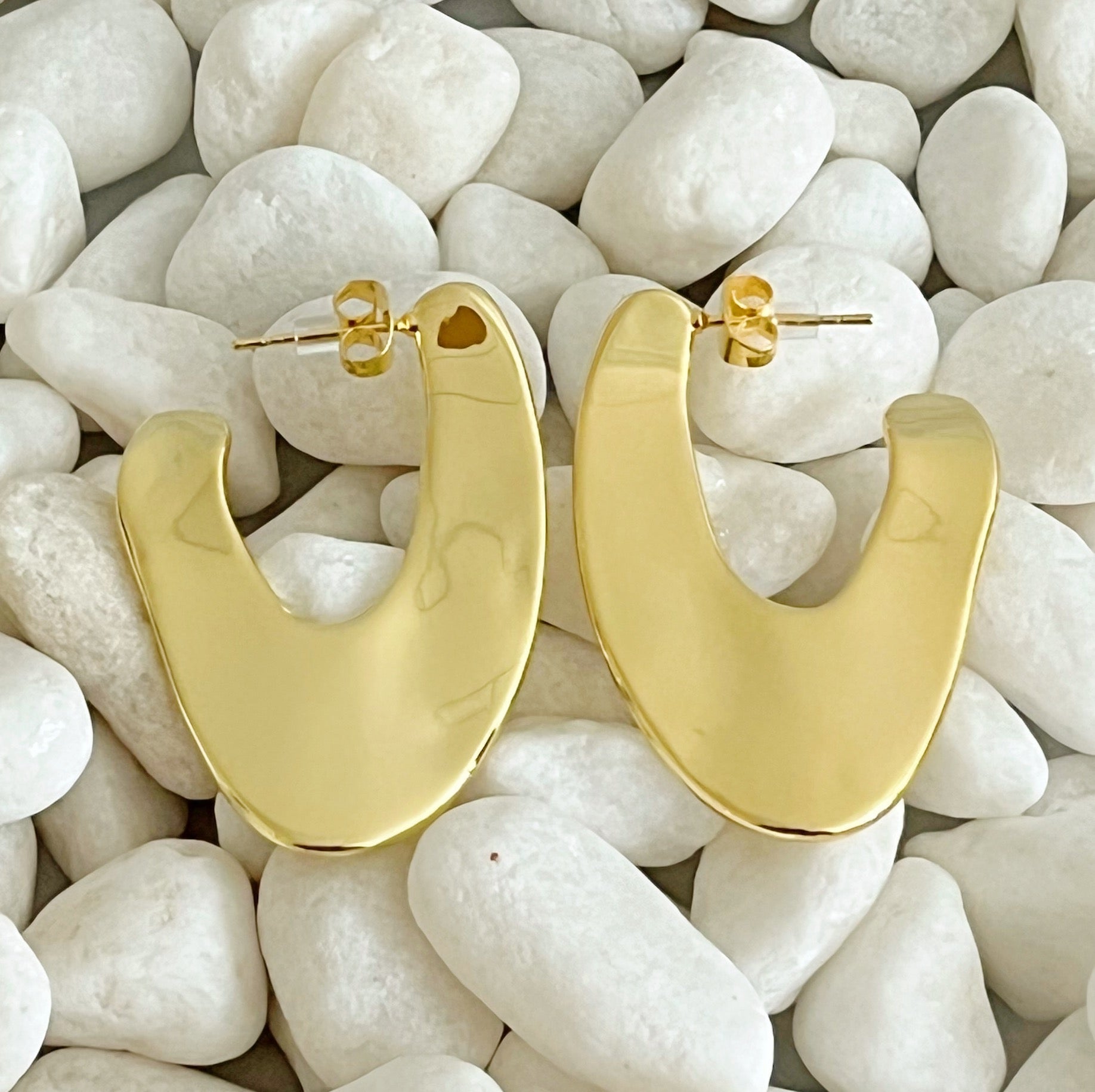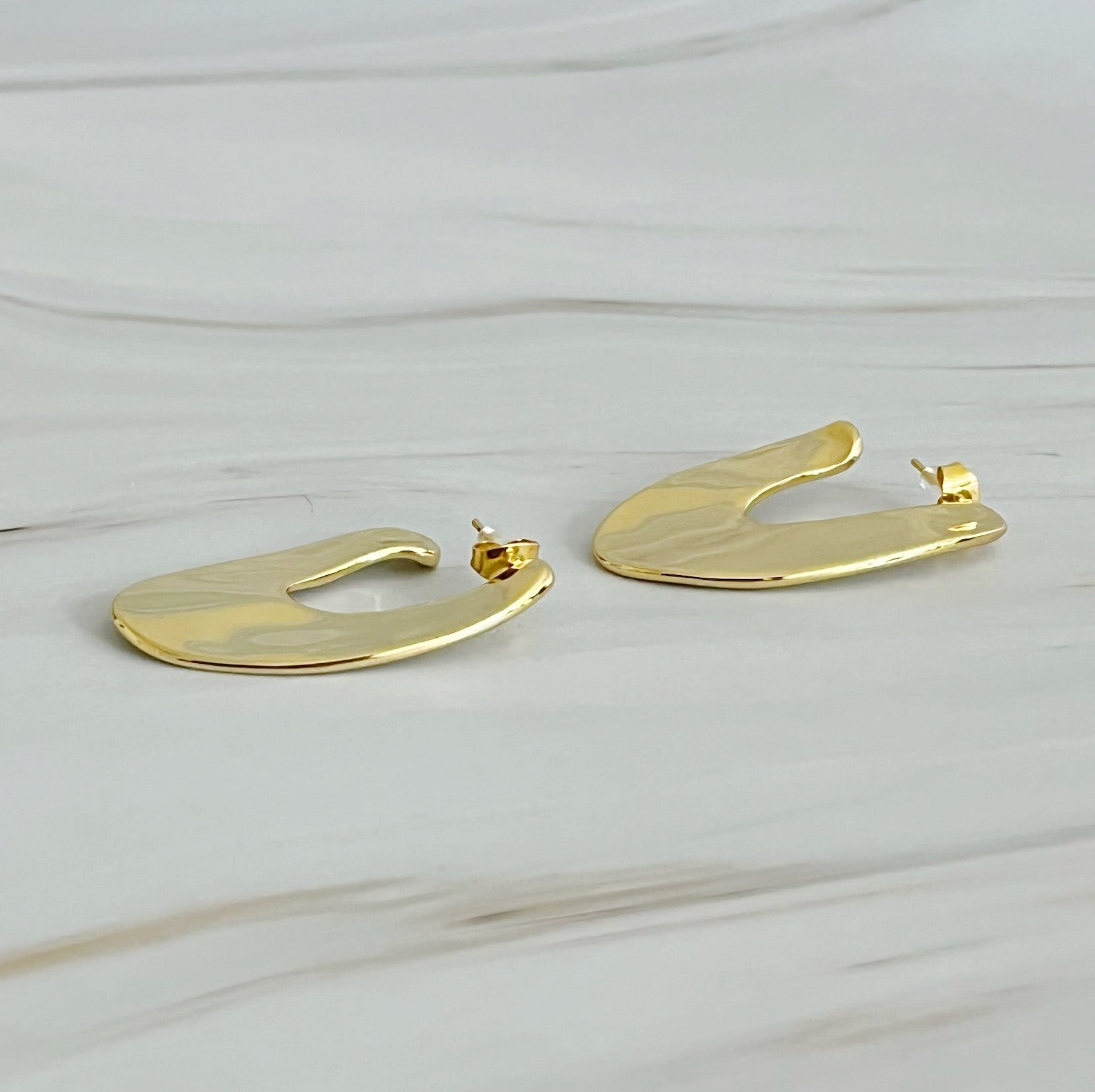 These Polished Metal Art Hoop Earrings are style of modern elegance. Crafted with a sleek and polished finish, they elevate any look with their minimalist design. The perfect accessory for a sophisticated and contemporary style.