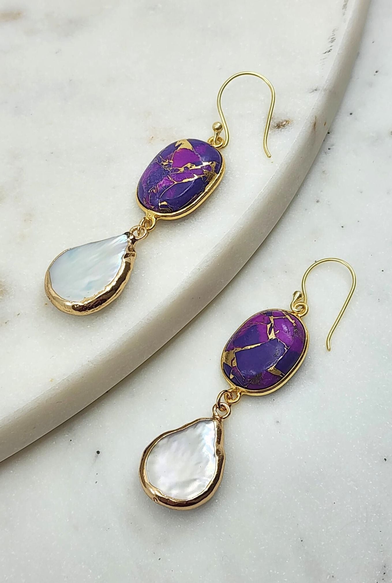 Rome Earrings in Purple Mojave and Pearl
